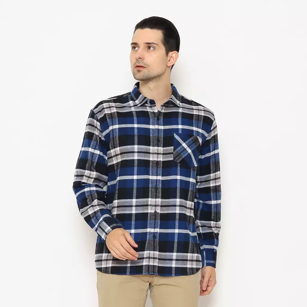 AMK Kemeja Pria Flannel Lengan Panjang SHF KENZO L/S Blue