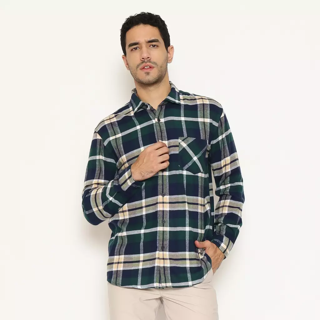 AMK Kemeja Pria Flannel Lengan Panjang SHF KENZO L/S GREEN