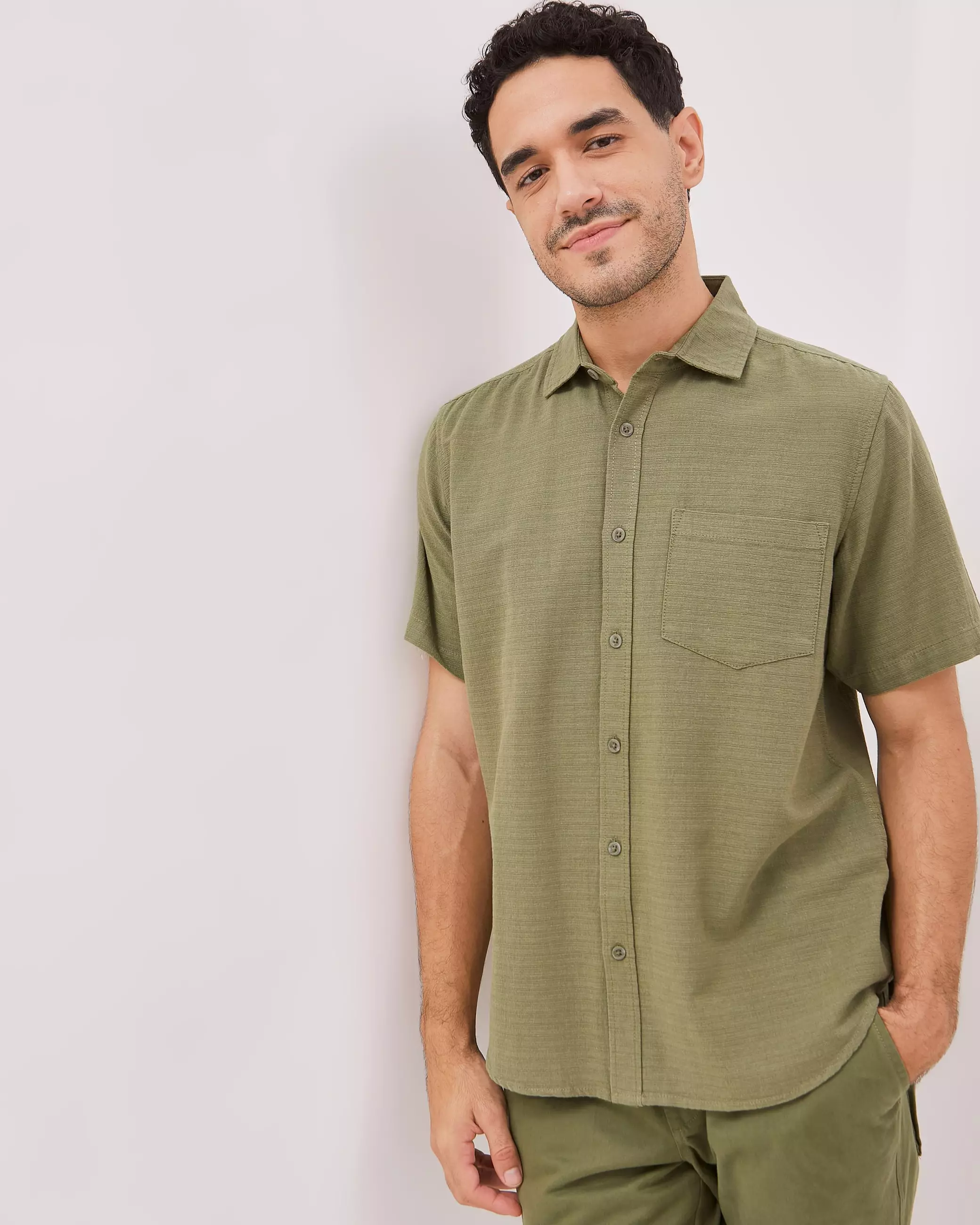 AMK Kemeja Pria Lengan Pendek SHS Andreas Ss Olive
