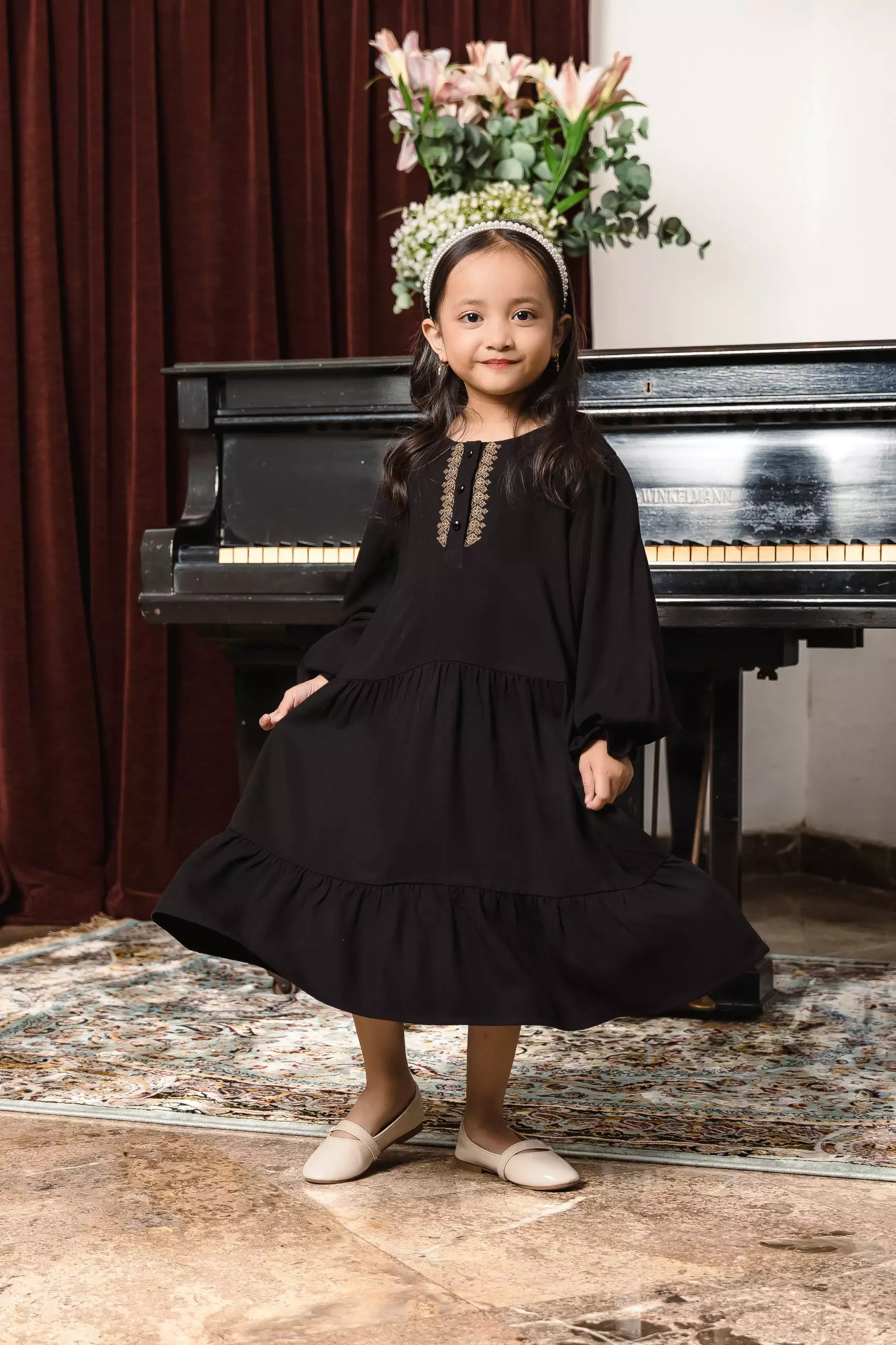 AMK Sarimbit Keluarga Set Bakhati Series Black Girl Dress Anak