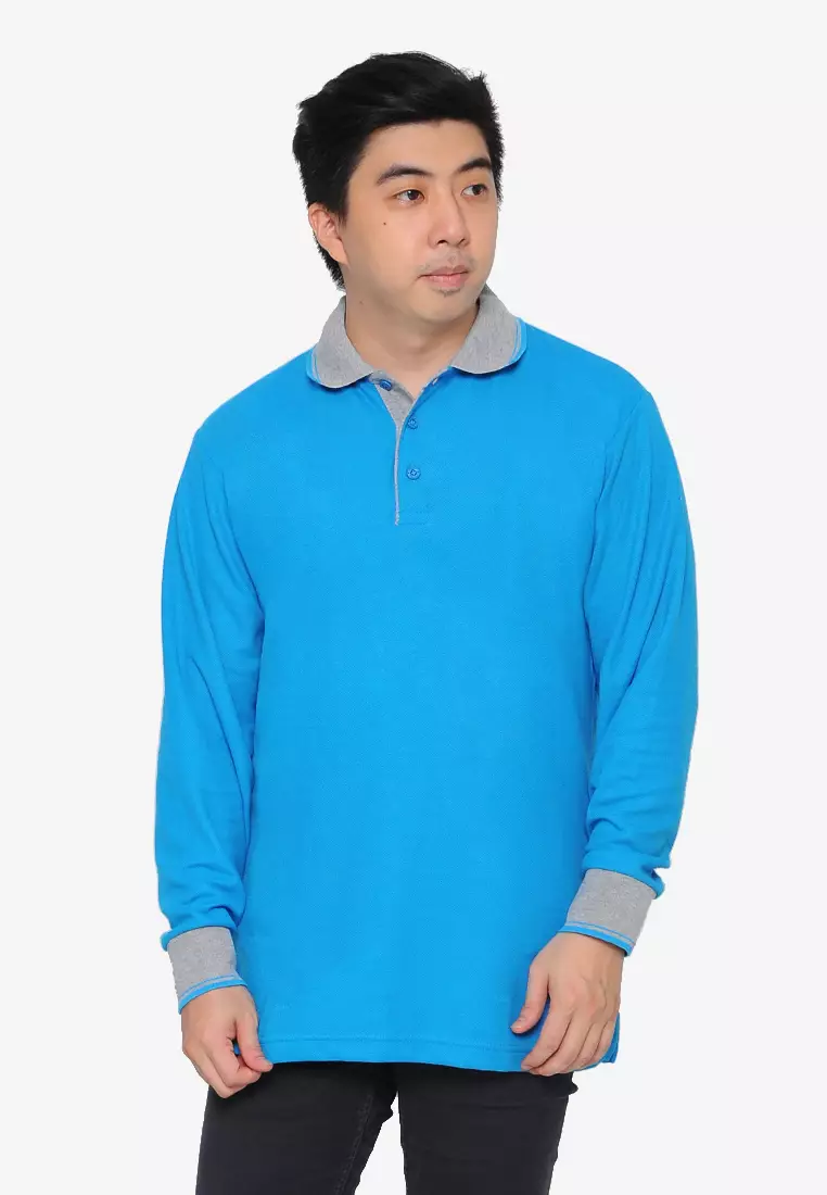 Andre Michel Kaos Polo Shirt Lengan Panjang Kerah Abu Biru Cerah 933-64