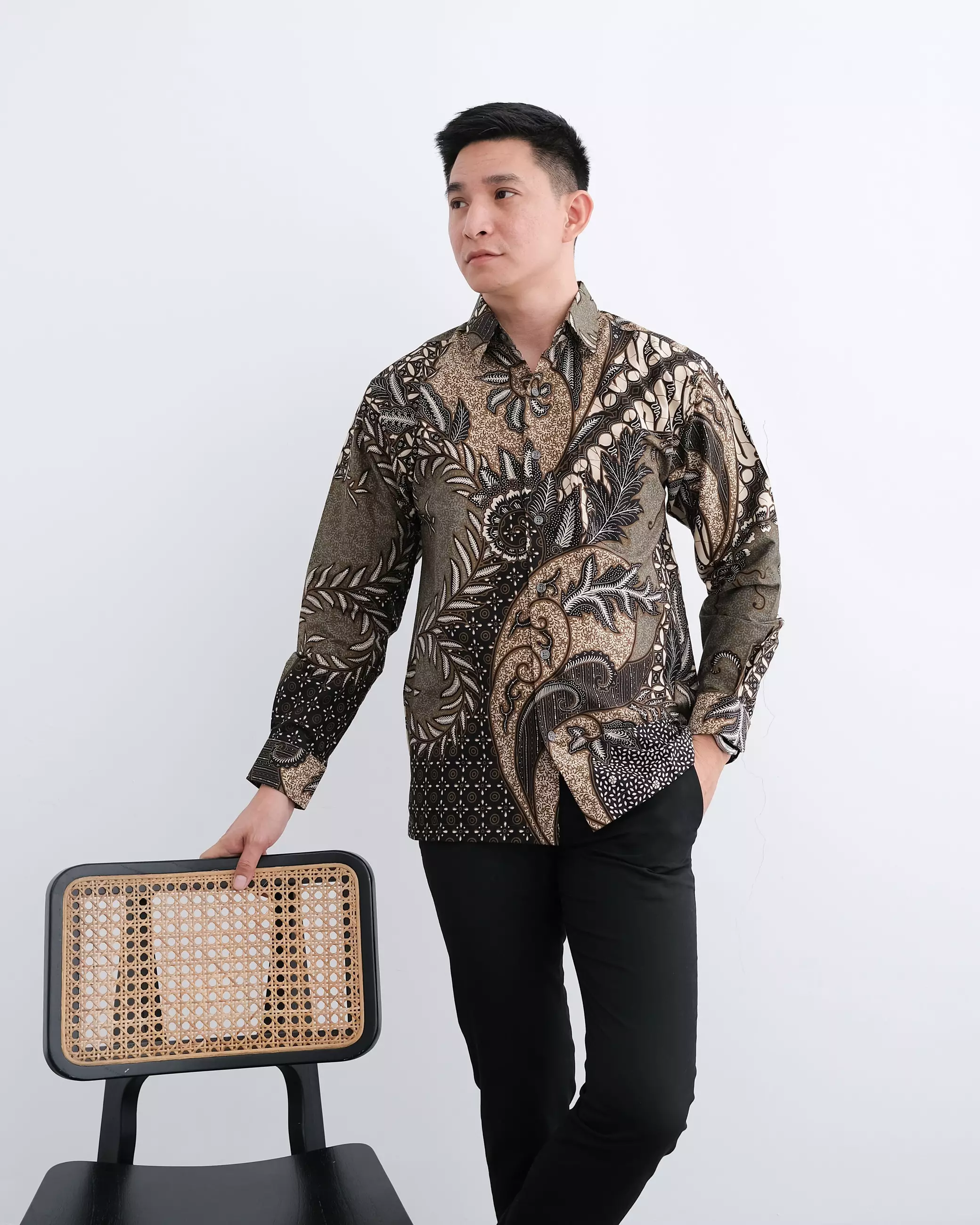 Andre Michel Kemeja Batik Lengan Panjang Abu Cokelat 16732