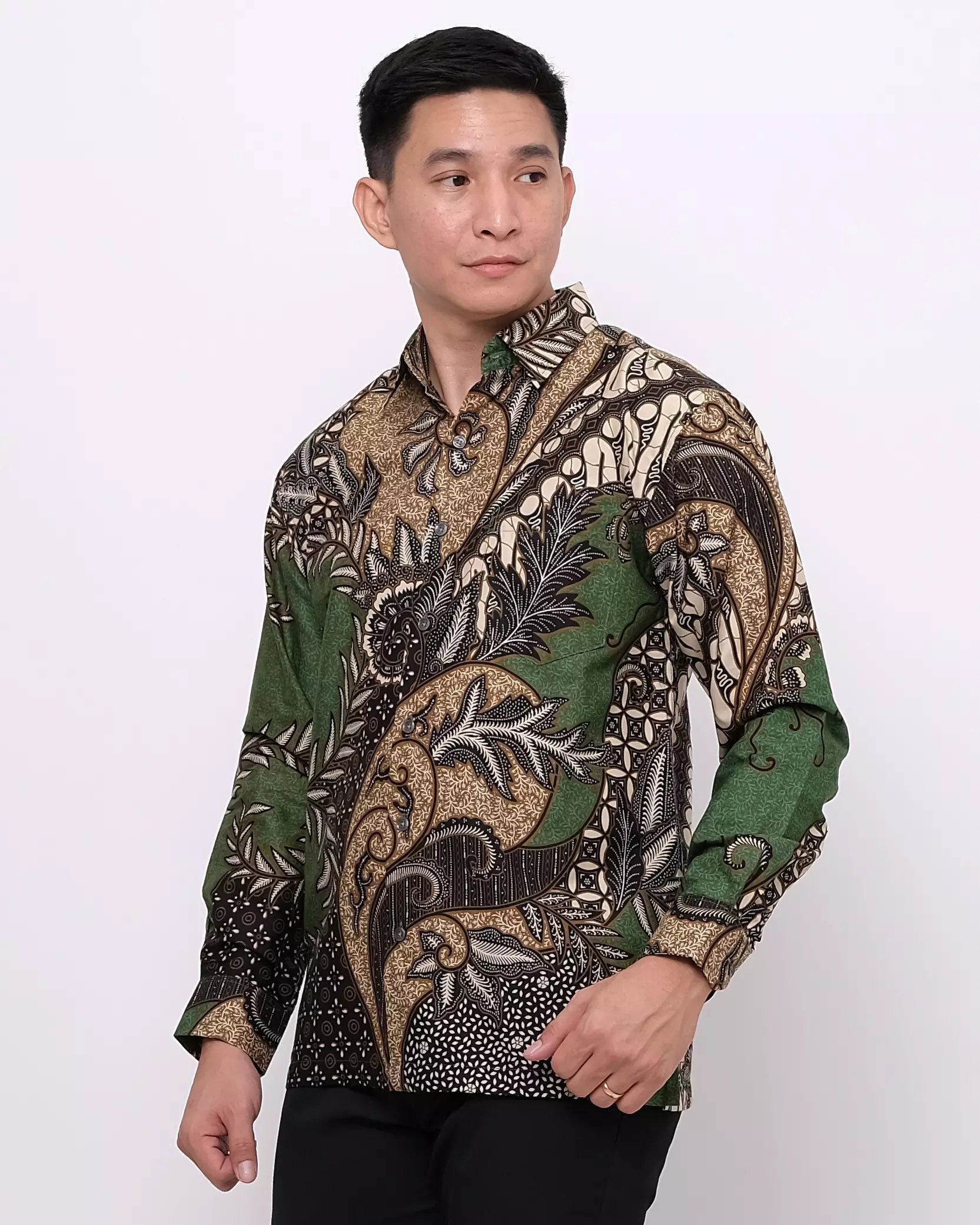 Andre Michel Kemeja Batik Lengan Panjang Hijau Cokelat 16732