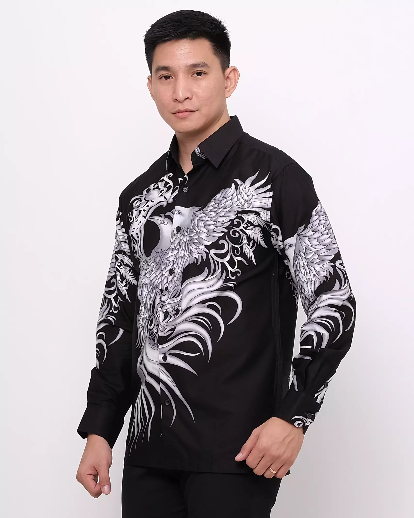 Andre Michel Kemeja Batik Lengan Panjang Hitam Motif Burung Putih 16746