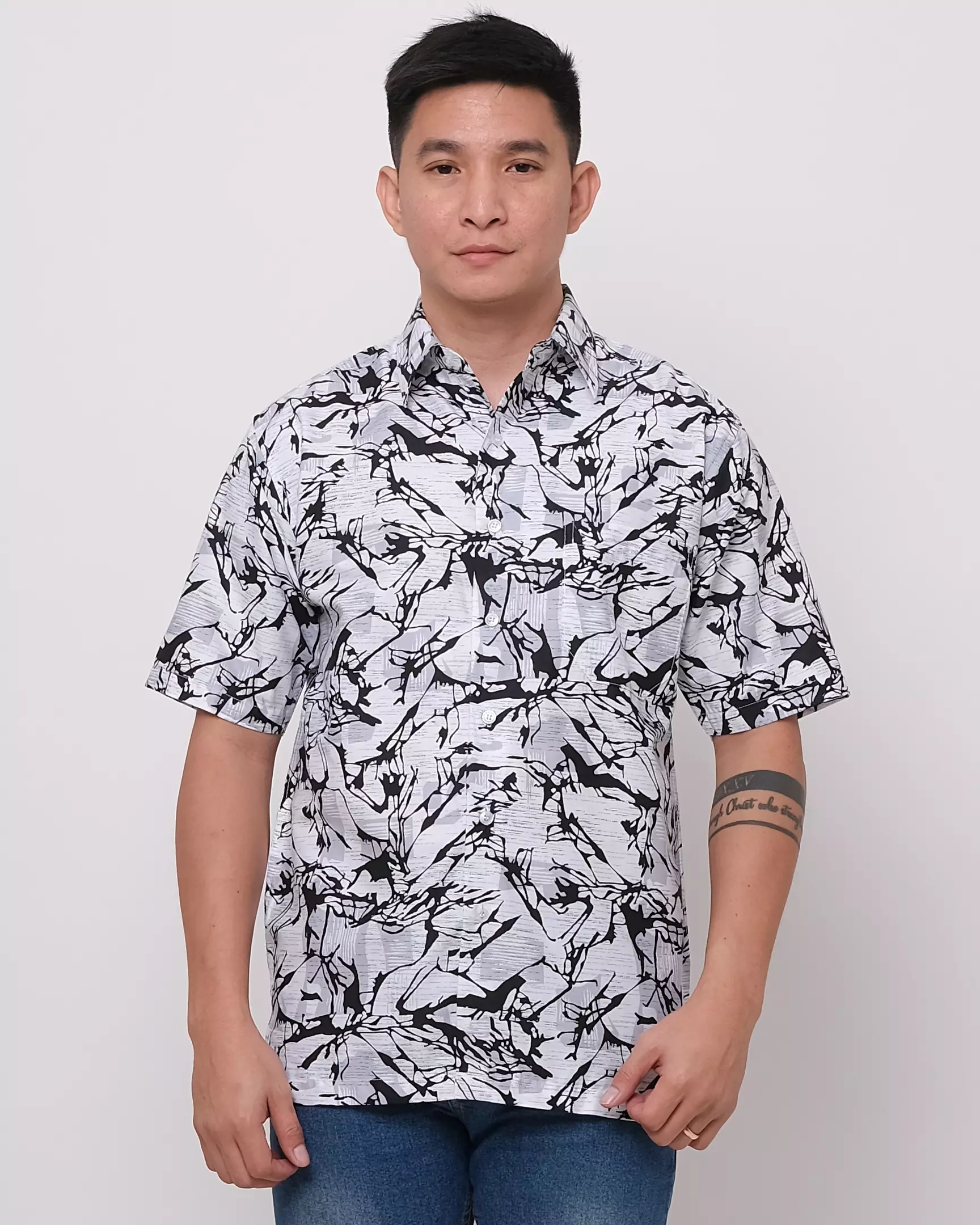 Andre Michel Kemeja Lengan Pendek Putih Motif Hitam Abu 16759