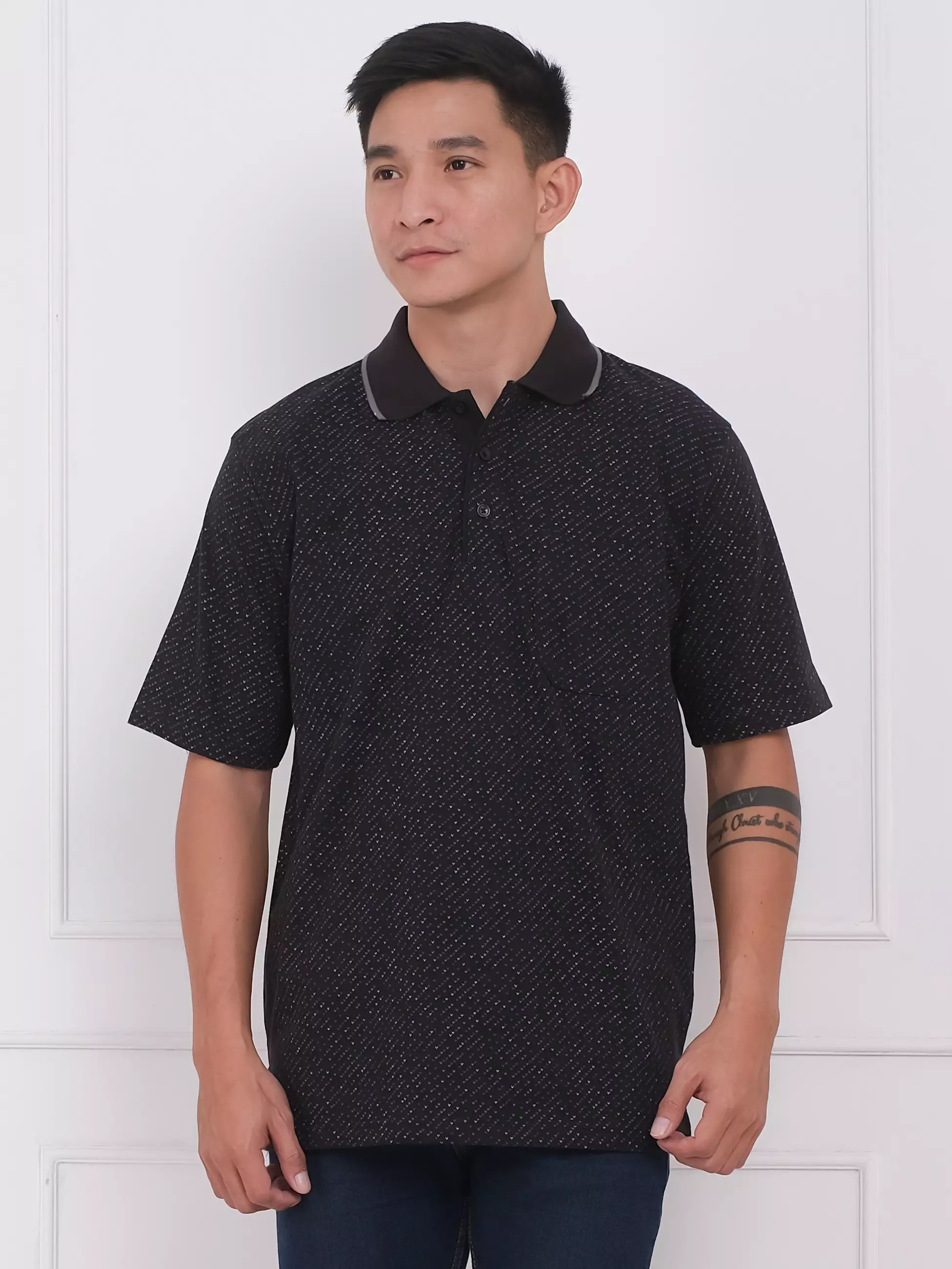 Andre Michel Polo Shirt Lengan Pendek Hitam Motif 3402