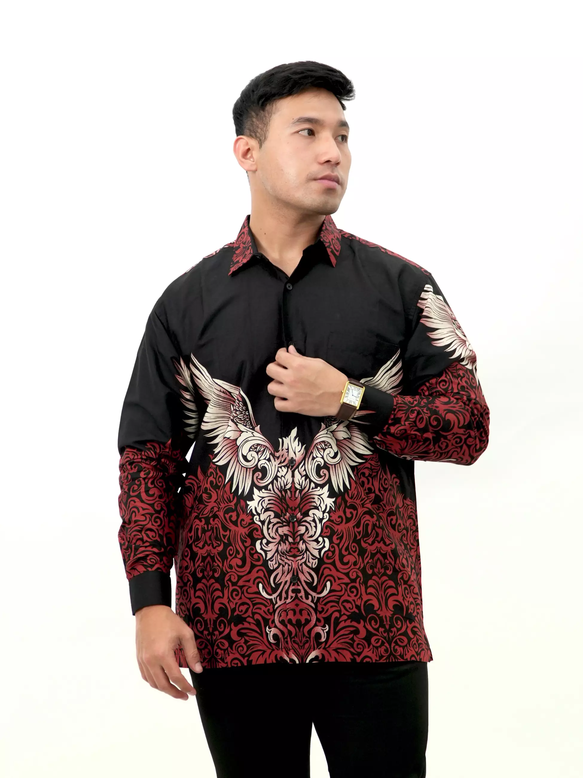 Kemeja Batik Lengan Panjang Hitam Merah 16811