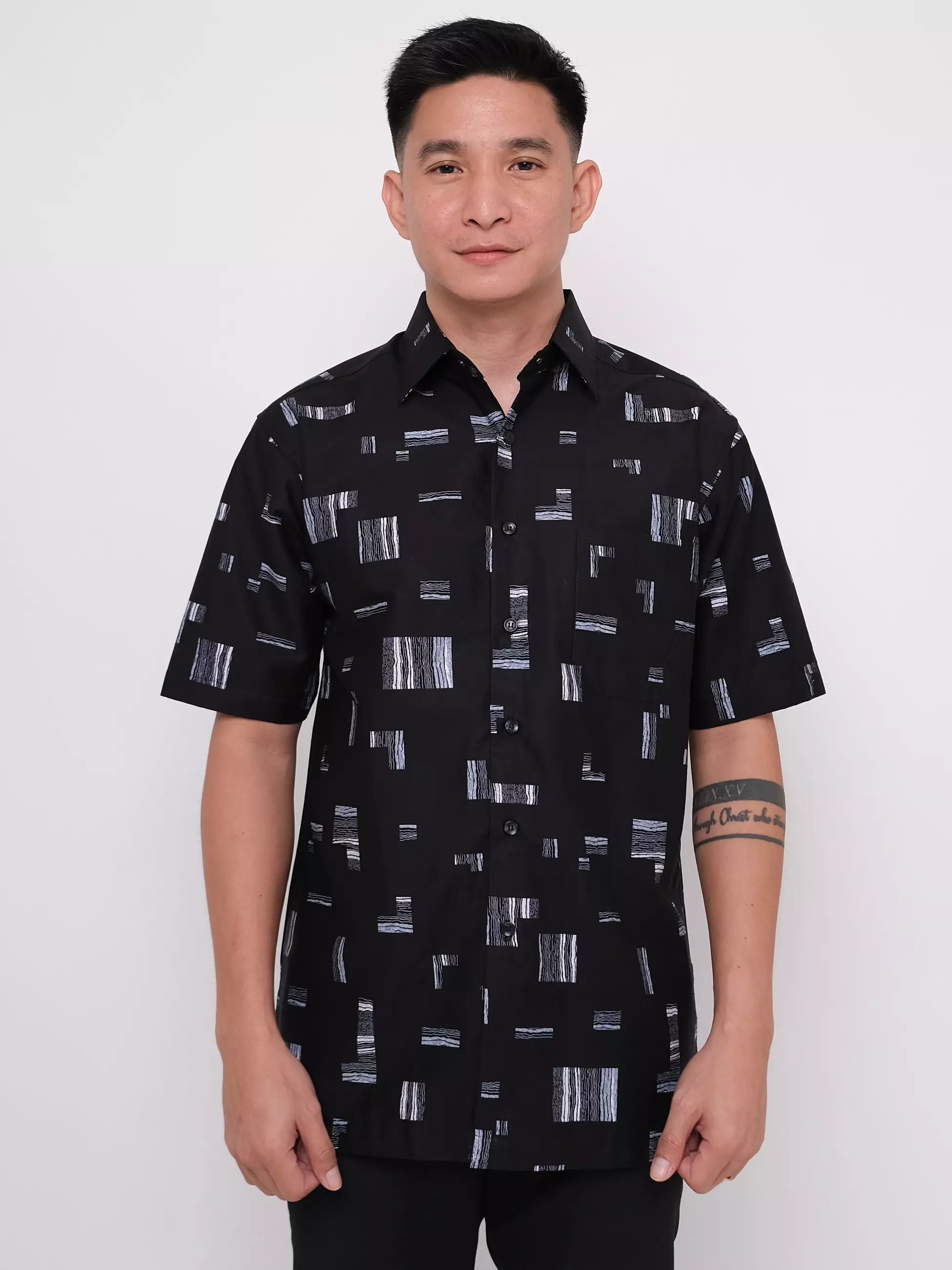 Kemeja Katun Lengan Pendek Hitam Motif Kotak-Kotak 16885