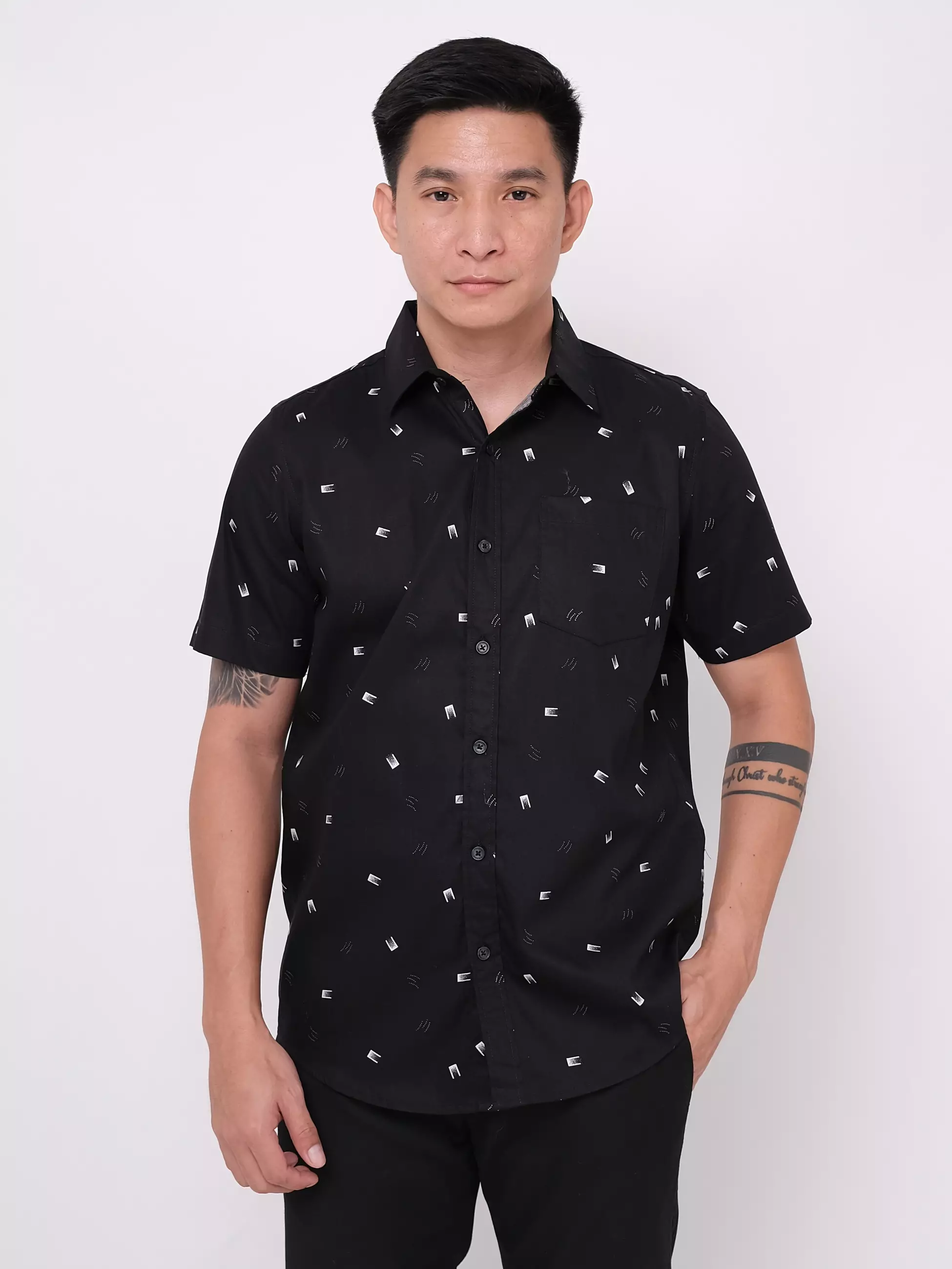 Kemeja Lengan Pendek Hitam Motif Kotak Kecil 16883