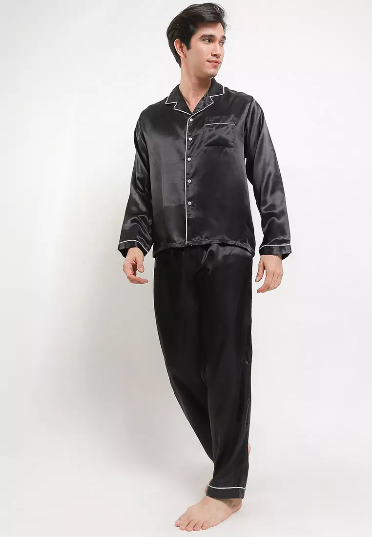 Pyjama Pijama Baju Tidur Satin Silk Long Sleeve Long Pants Mens Sleepwear