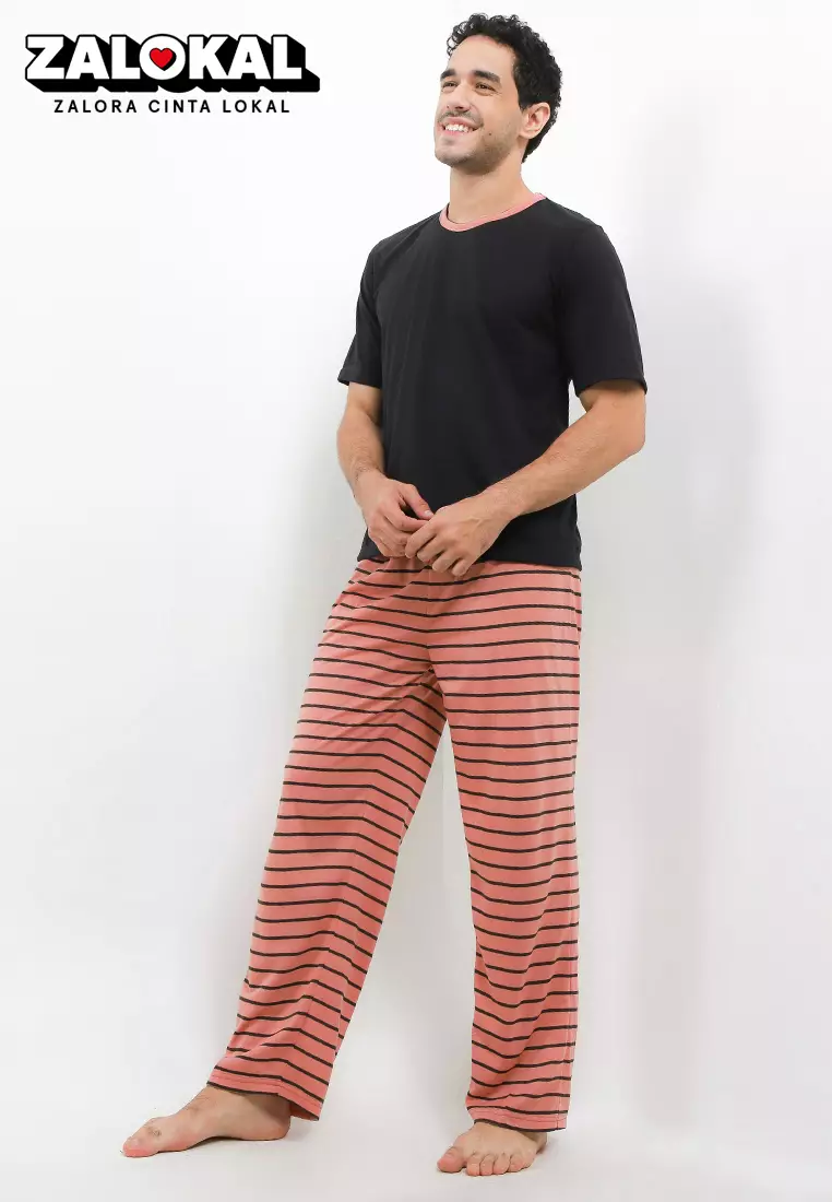 Pyjama Pijama Baju Tidur Short Sleeve Long Pants Mens Pria Sleepwear