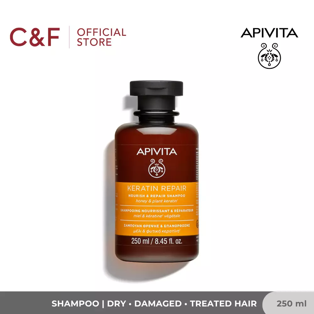 Apivita Keratin Repair Nourish & Repair Shampoo 250 ml | Sampo Natural Non SLS Untuk Rambut Rusak dan Kering Menutrisi Memperbaiki dan Mencegah Bercabang