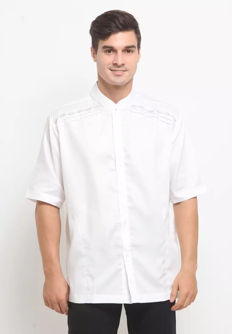 - Leher: Kerah Mandarin