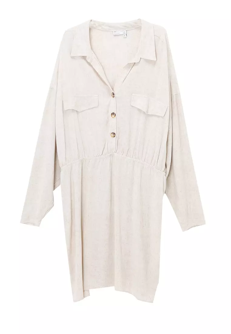 Curve Linen Drop Shoulder Shirt Dress With Asymmetric Skirt