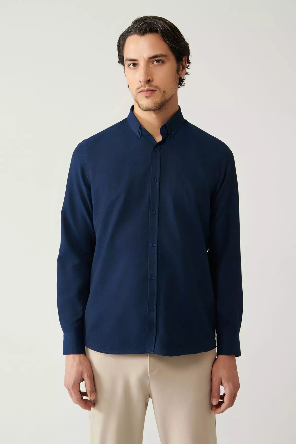 Men's Navy Blue Button-Down Collar Easy Iron Cotton Oxford Shirt E002000