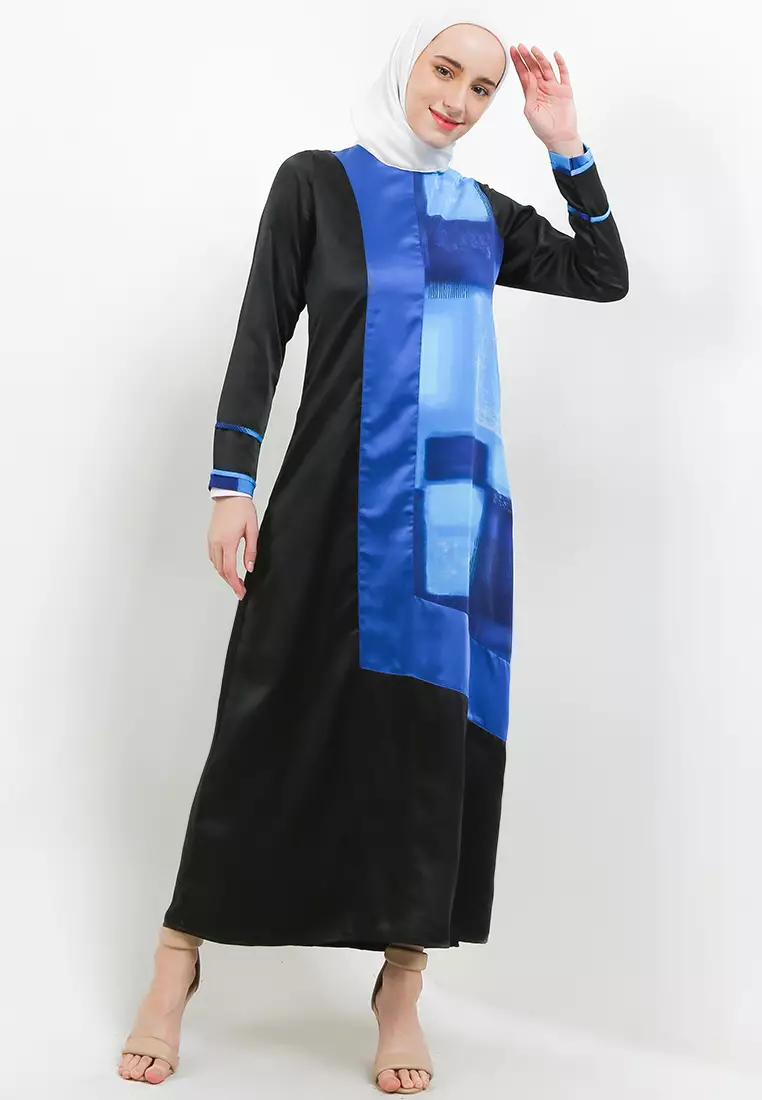 Levinia Maxi Dress In Blue And Black Print