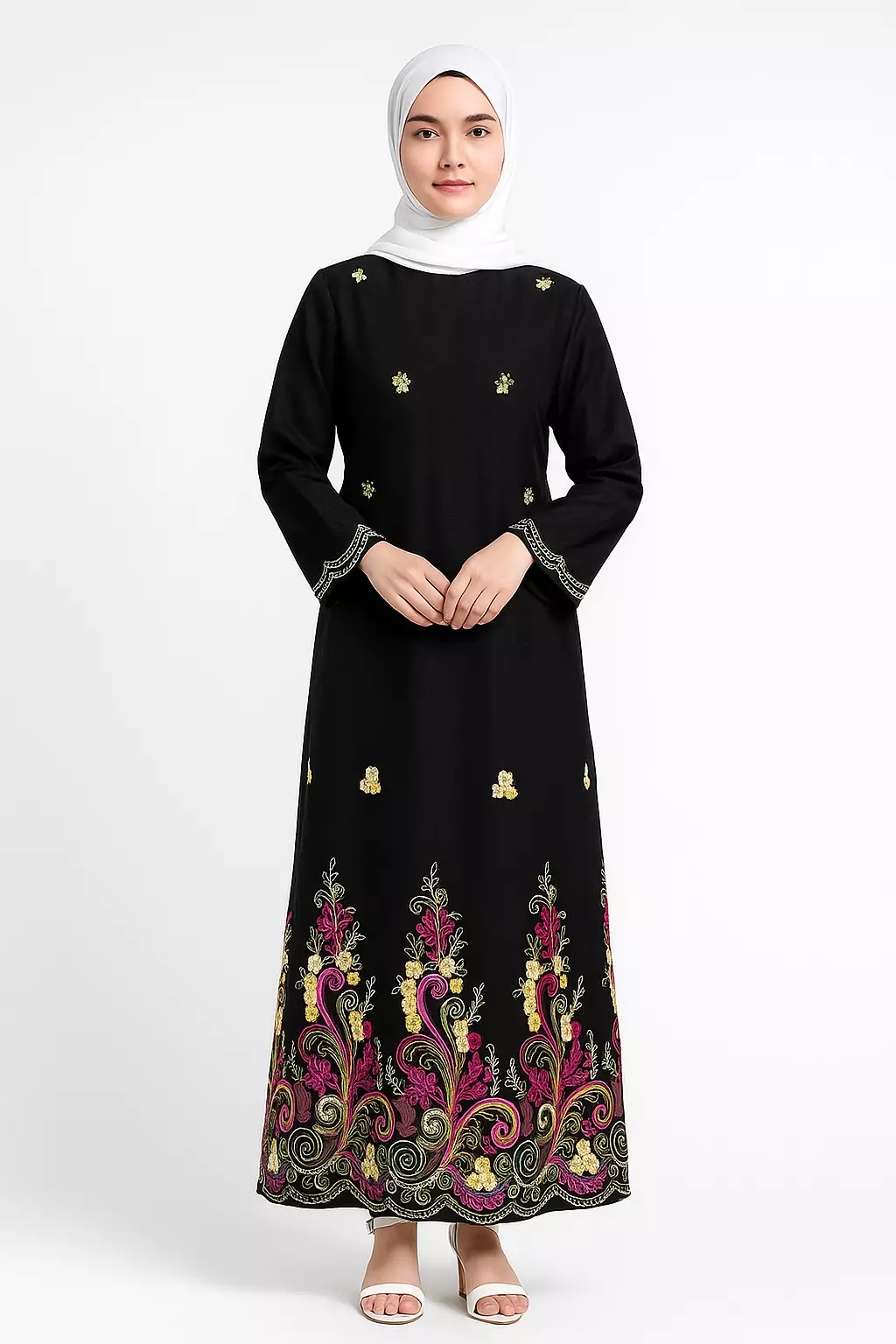 Zahra Maxi Dress In Black With Yellow Pink Embro