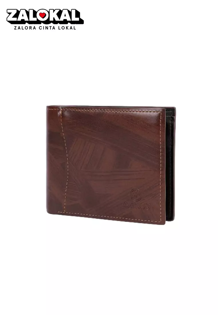 Dompet Lipat Pria Pendek Blocking Bahan Kulit PU Leather Premium BAEOS ORIGINAL - Brown