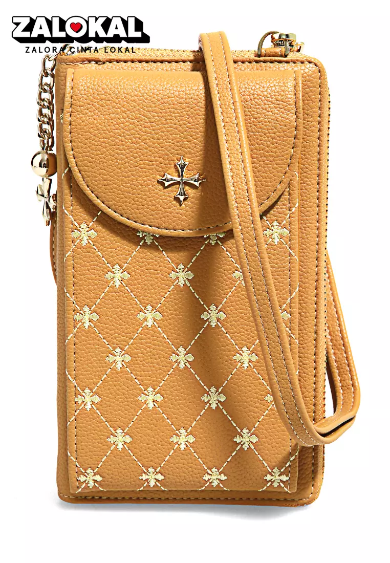 Tas Selempang Handphone Sling Bag Wanita Large Compartment Material Leather ORIGINAL
