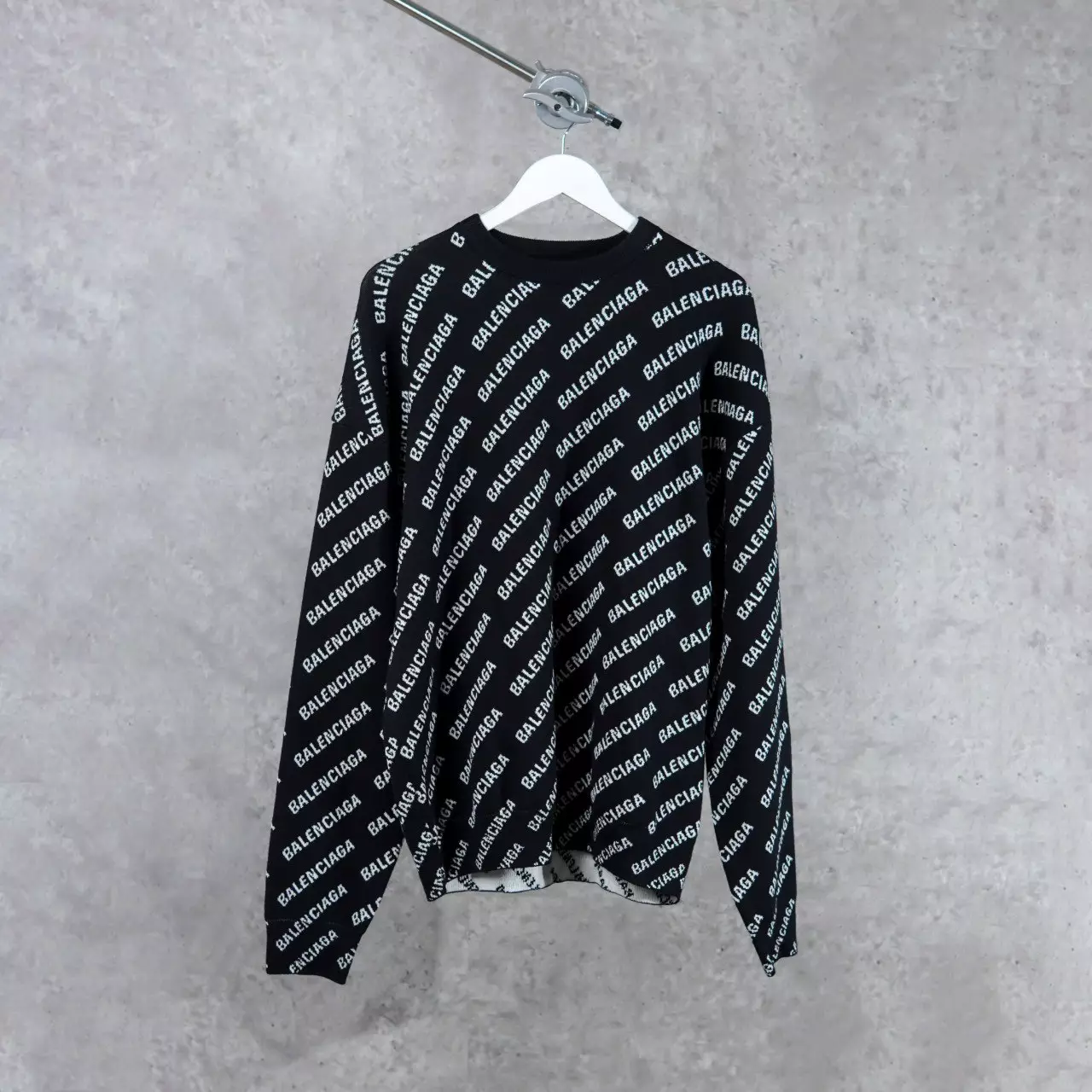 Sweater BALENCIAGA ALL OVER TEXT WHITE BLACK KNIT SWEATSHIRT 100% ORIGINAL