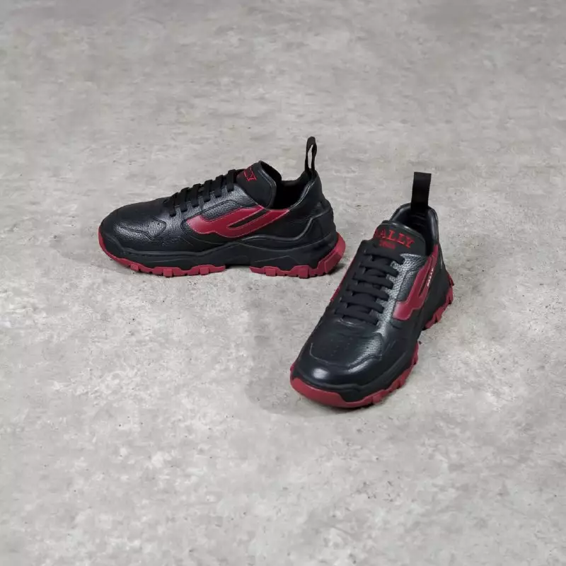 Sepatu BALLY HOLDEN RED ALL BLACK GRAINED LEATHER SNEAKER 100% ORIGINAL