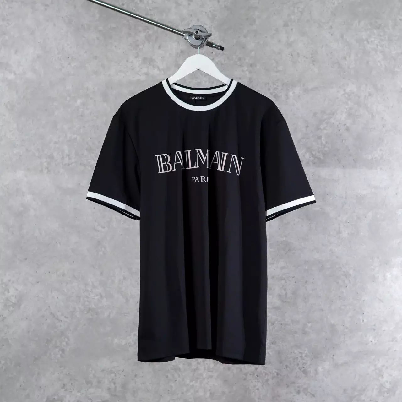 BalmainKaos BALMAIN TEXT WHITE TIPPED COLLAR SLEEVE BLACK Tshirt 100% ORIGINAL5740000.003850000.00