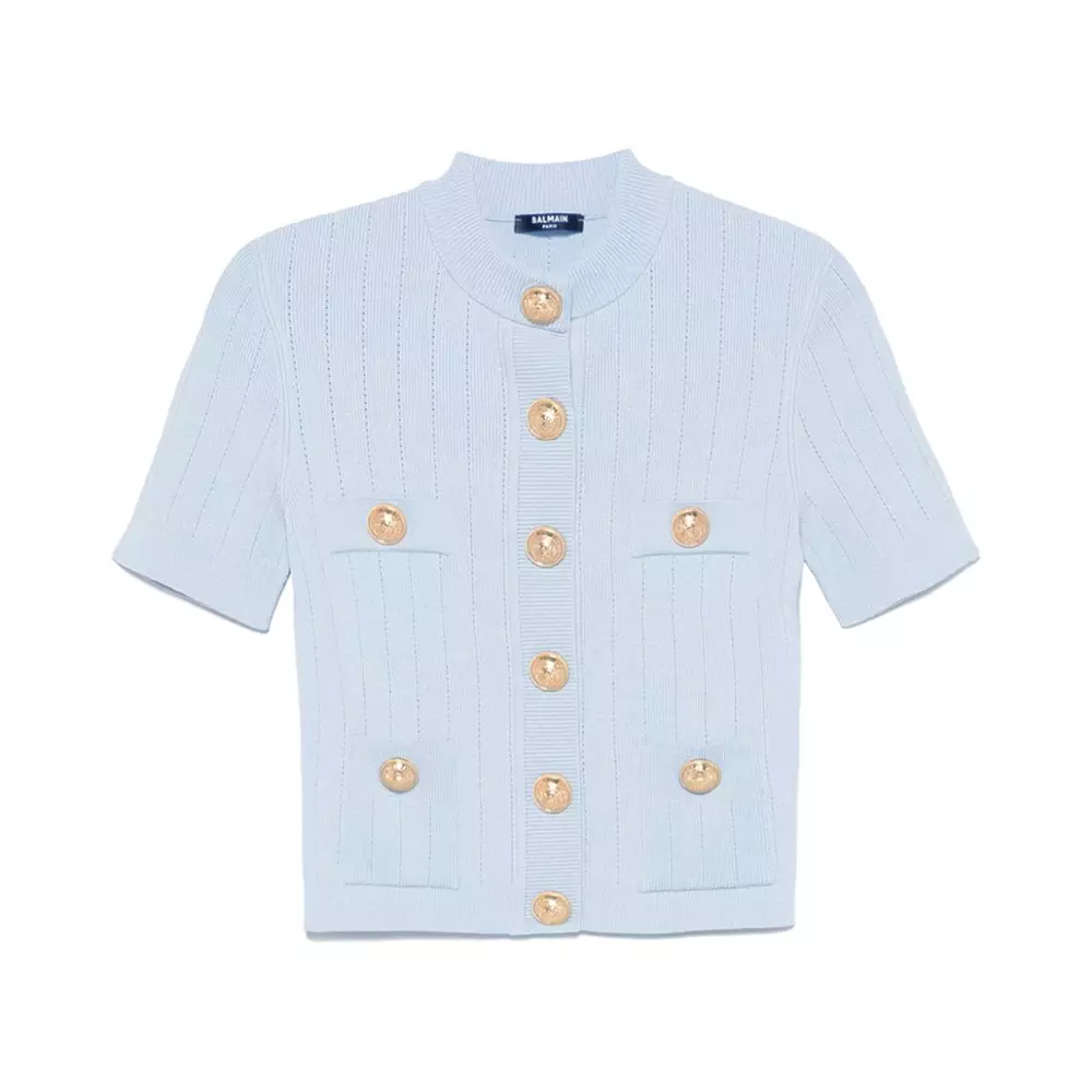 Balmain[4.4PRIL KEJUTAN HARGA] Neck Buttoned Knitted Cardigan Light Blue18650000.007889000.00