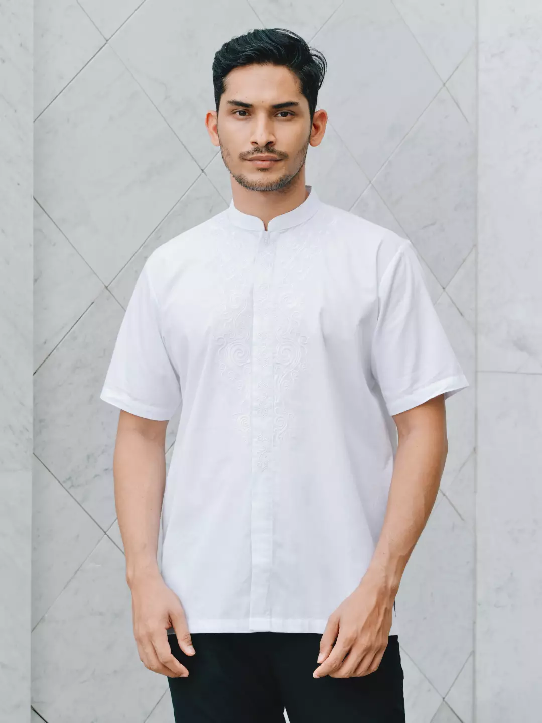 Adyatma Baju Koko Bordir Pria COTTON COMBED TWILL White Regular Fit Baju Muslim Pria Lengan Pendek