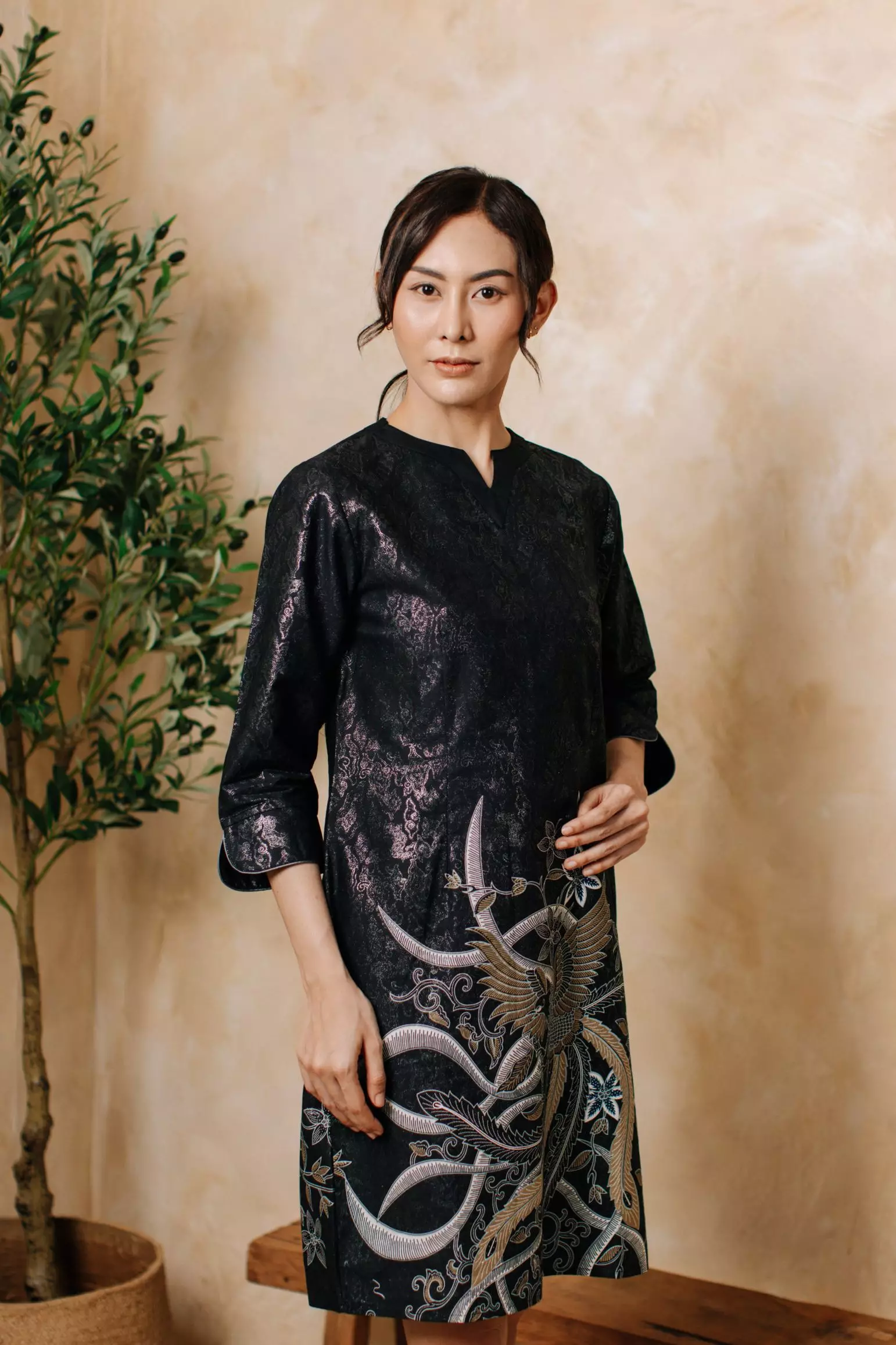Adyatma Naratama Black Dress Batik Wanita Katun Foil
