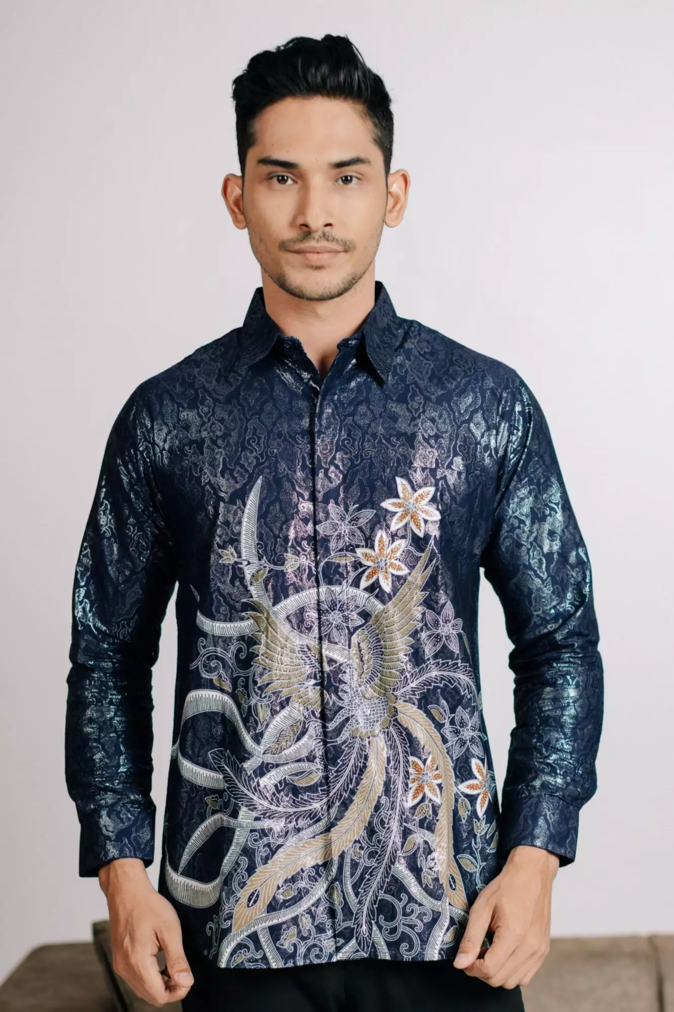 Adyatma Naratama Navy Blue Kemeja Batik Slim Fit Pria Lengan Panjang Katun Foil