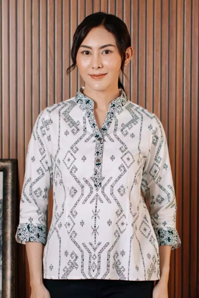 Adyatma Renjana Green White Putih Blouse Batik Wanita Katun