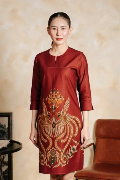 Avira Terracotta Red Dress Batik Wanita Tricot Katun