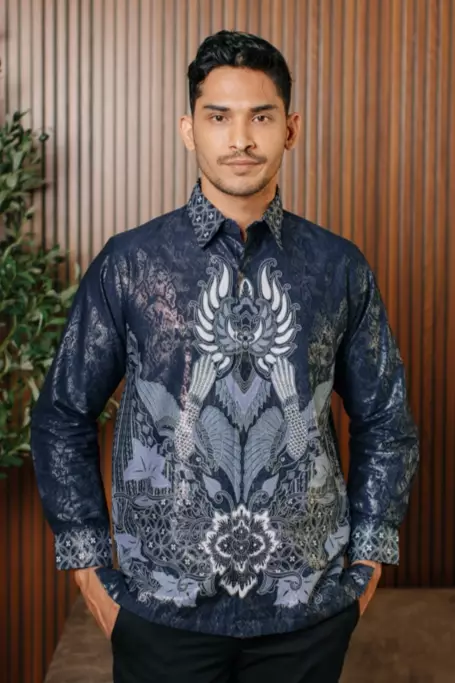 Gantari Navy Blue Kemeja Batik Pria Furing Regular Fit Lengan Panjang Katun Foil