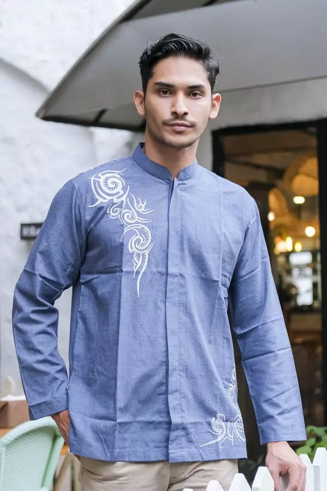 - Leher: Kerah Mandarin