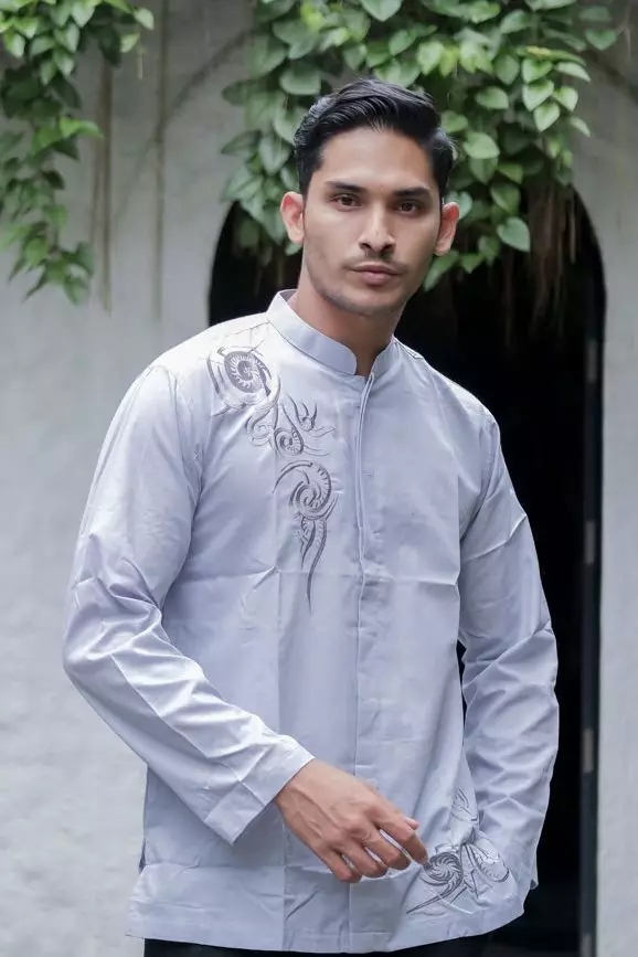 Koko Pria Panjang Bordir A2J12 Abu Muda