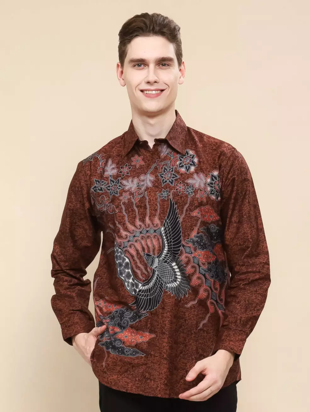 Priyanka Brown Kemeja Batik Slim Fit Pria Lengan Panjang Katun