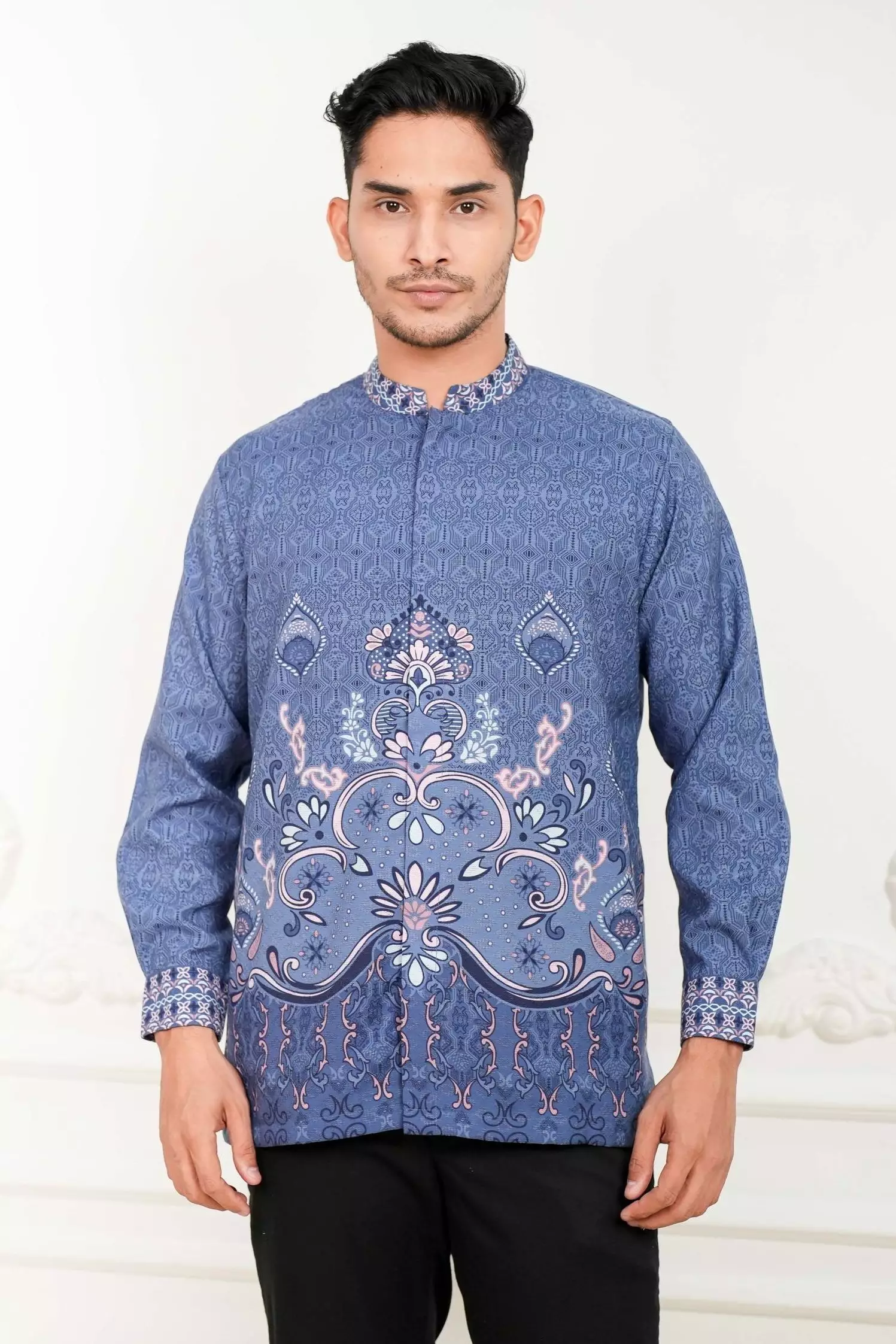 Sarimbit Akasya Blue Kemeja Pria Koko Lengan Panjang Regular Fit Furing