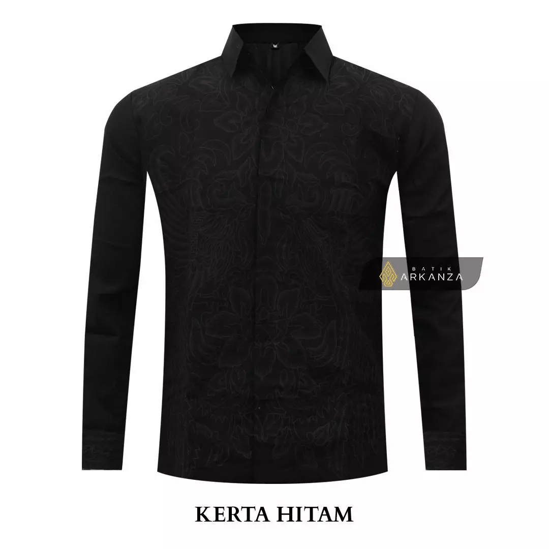 Kemeja Batik ARKANZA Motif Kerta Hitam Lengan Panjang Lapis Furing Slimfit Katun Premium