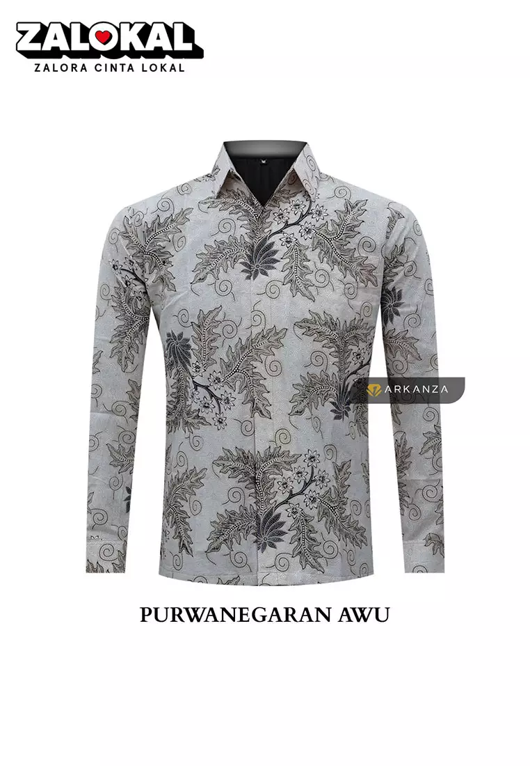 Kemeja Batik ARKANZA Motif Purwanegaran Awu Lengan Panjang Lapis Furing Slimfit Katun Premium