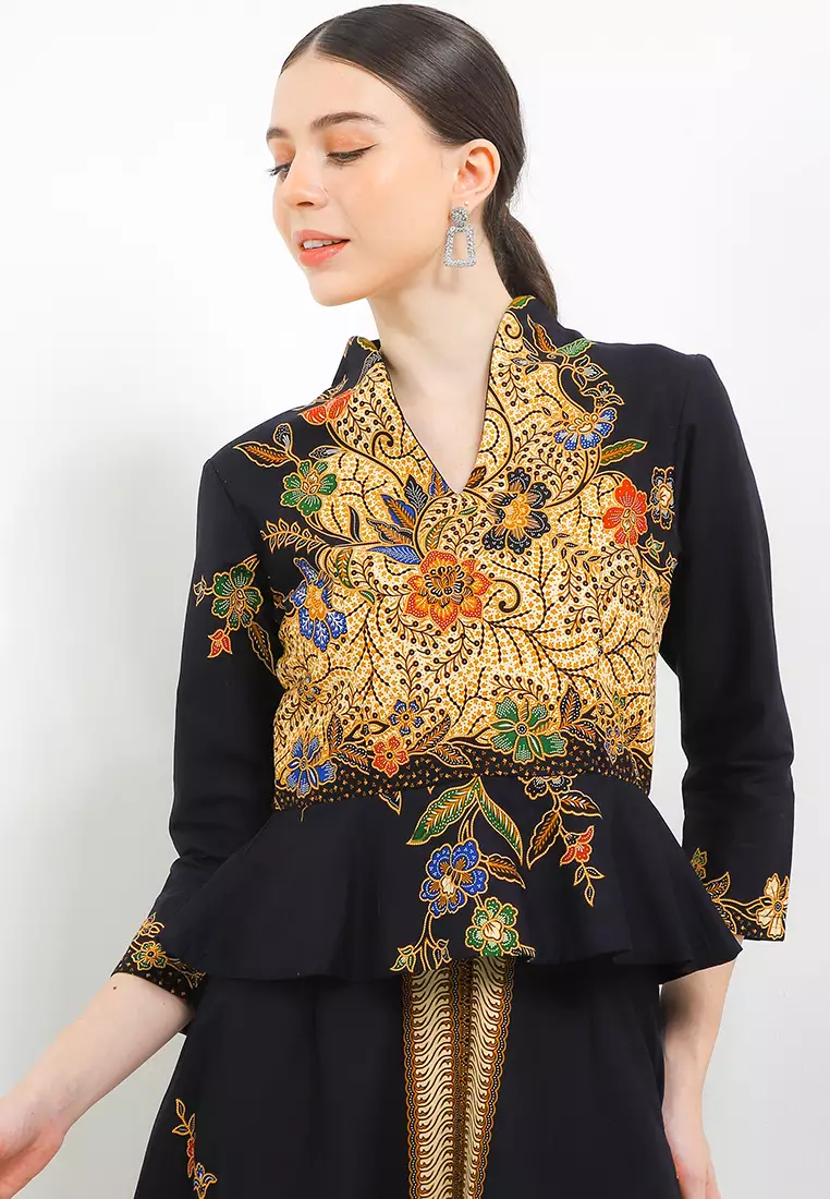 B.Swan-Necked PeplumCrop 7/8-length Sleeves+Lining