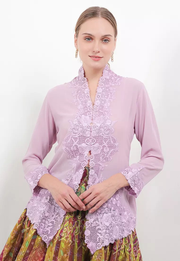 Embroidery Kebaya Classic Long/Sleeve-Gacluk Kopi