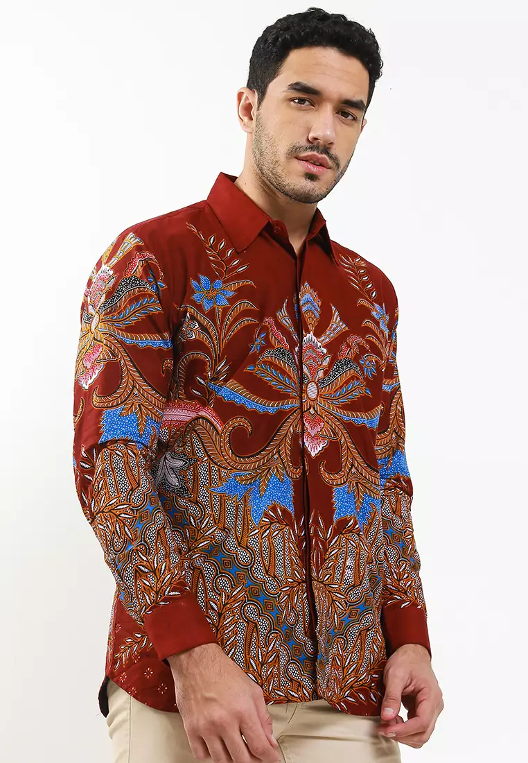 Nala Maron Kemeja Batik Pria Premium Slimfit Modern Lengan Panjang