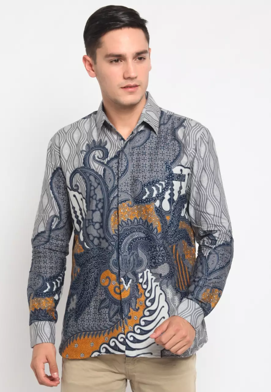 Sakra Biru Kemeja Batik Pria Premium Slimfit Modern Lengan Panjang