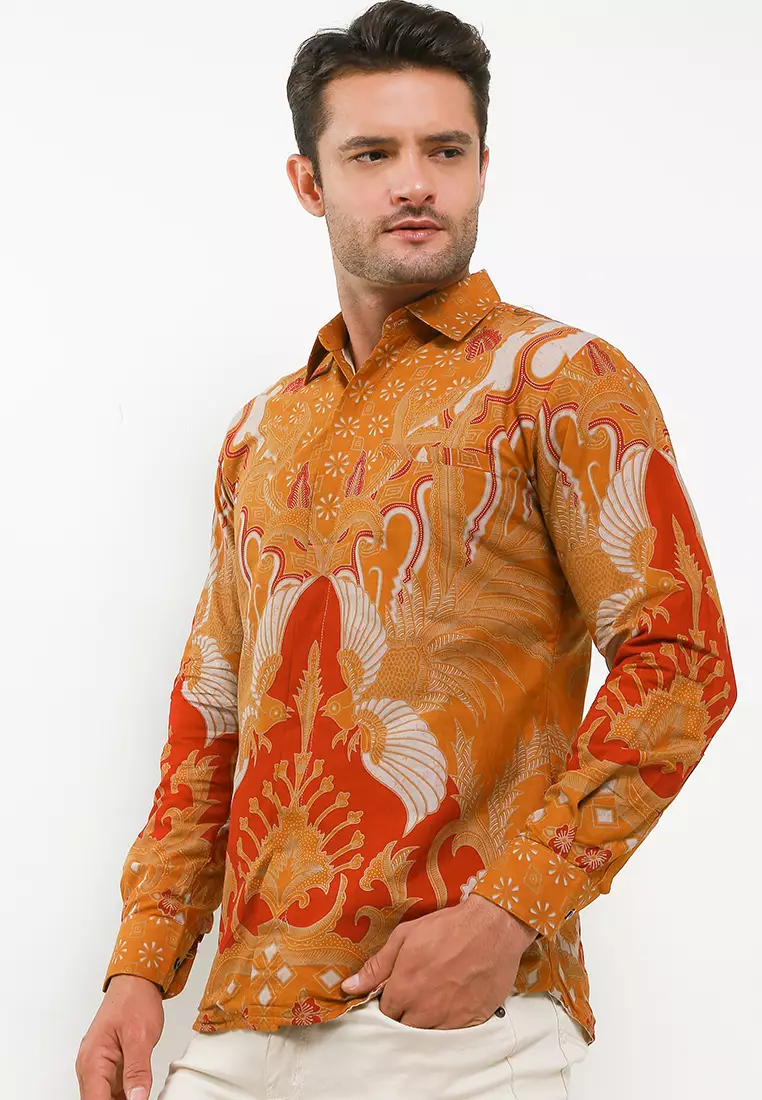 Swanggeni Oranye Kemeja Batik Pria Premium Slimfit Modern Lengan Panjang
