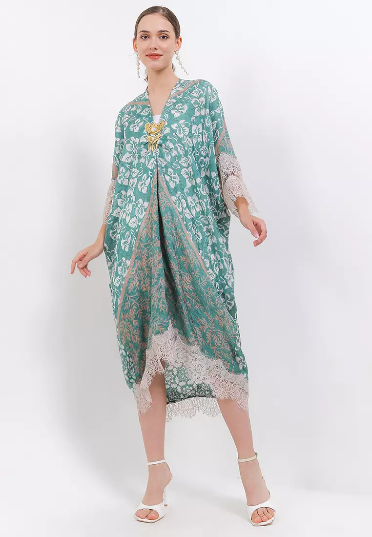 Batik Rizqina Kaftan Ayra Batik Wanita - Kaftan Kaca - Salem - Batik Cap Peranakan Series - OOTD Batik - Batik Viscose Premium - Soft Tulle Organza