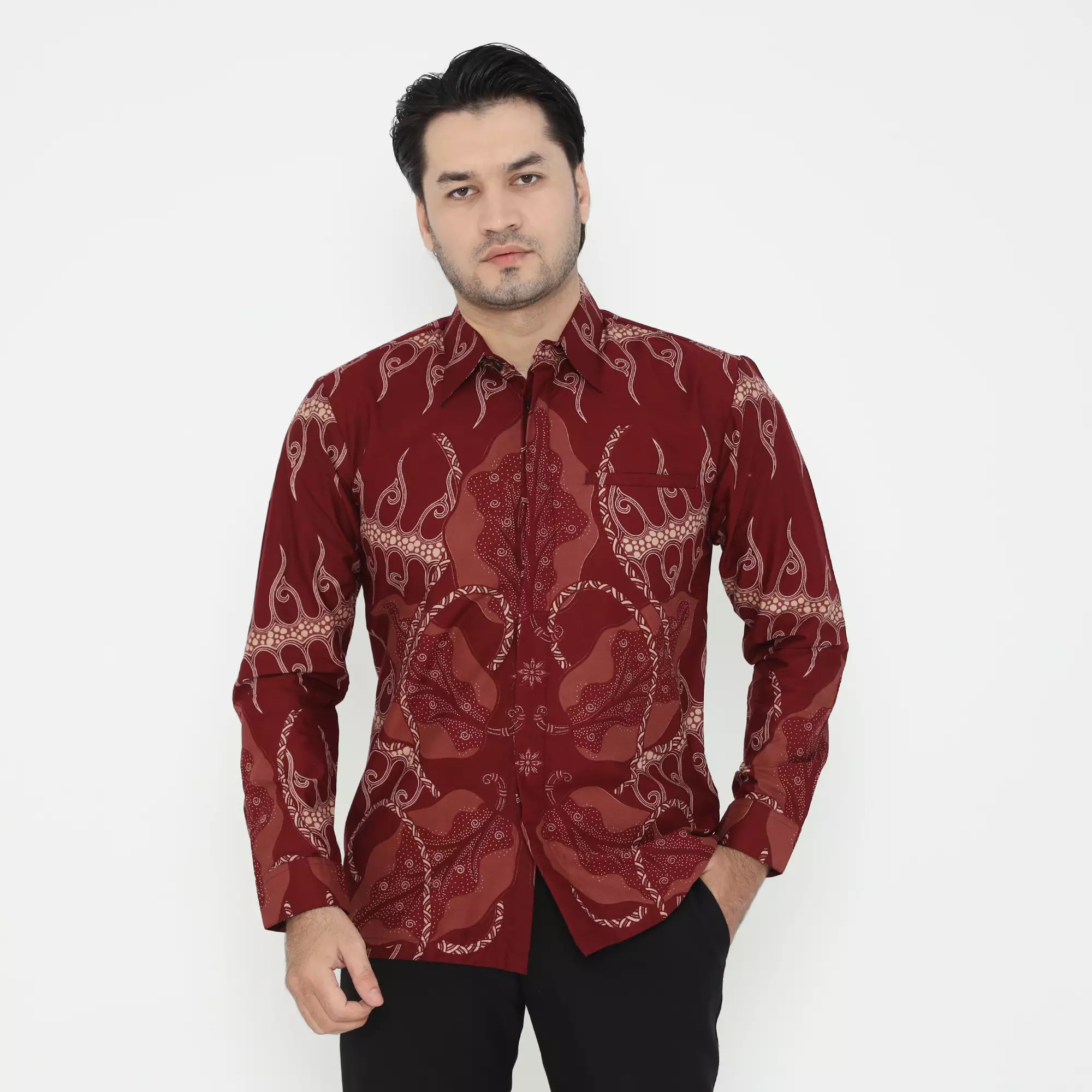Kemeja Batik Motif Laksmi Lengan Panjang Batik Tulis Slimfit Warna Red