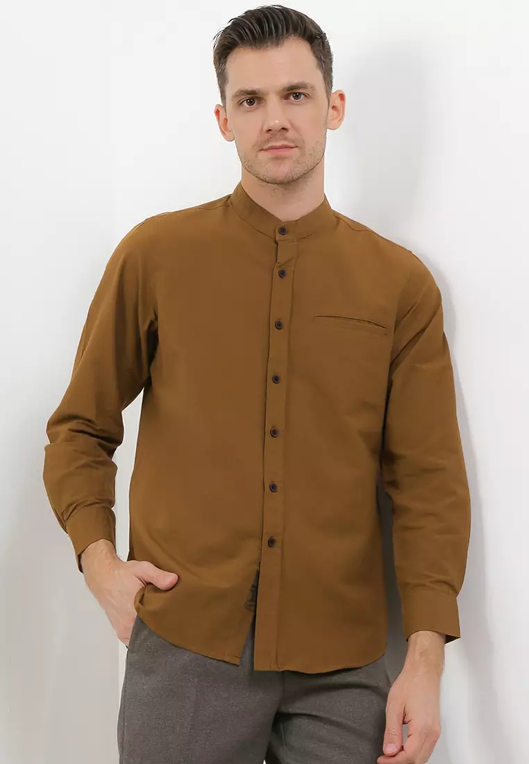Kemeja Pria Polos Katun Sigaret Lengan Panjang Brown Exclusive Premium