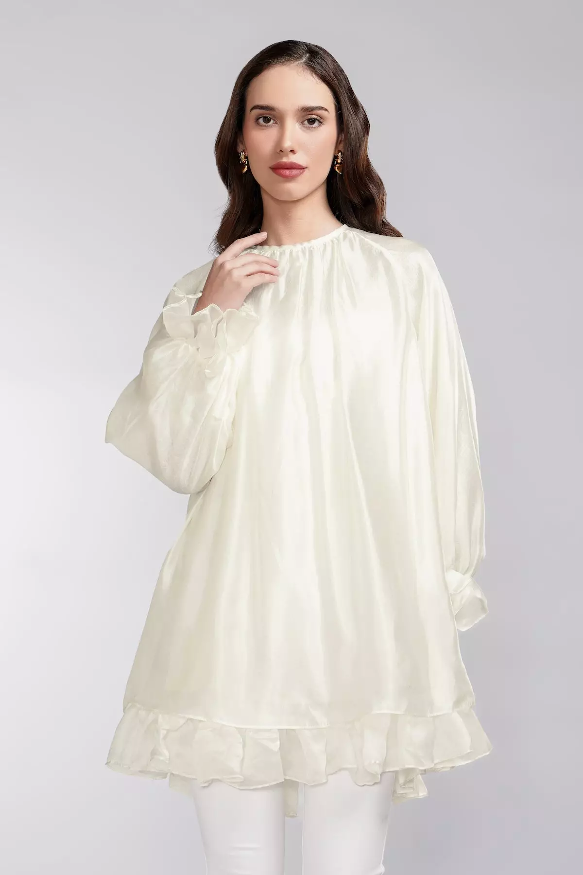 Benang Jarum - Ciara Ruffle Blouse - Pearl Ivory