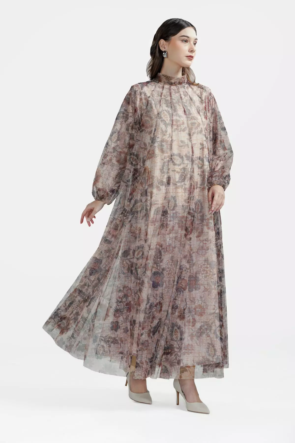 Benang Jarum - Festive Finesse Flowy Dress - Maple