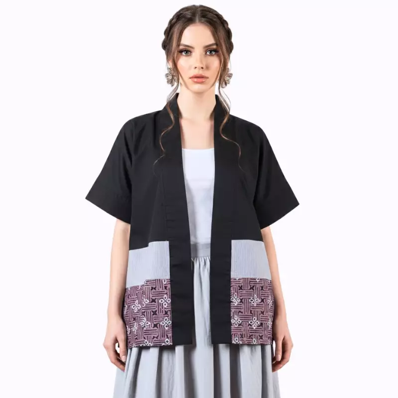 Blazer Outer Batik Wanita - Bhatara Batik Moderna - Atasan Batik Modern Lengan Pendek